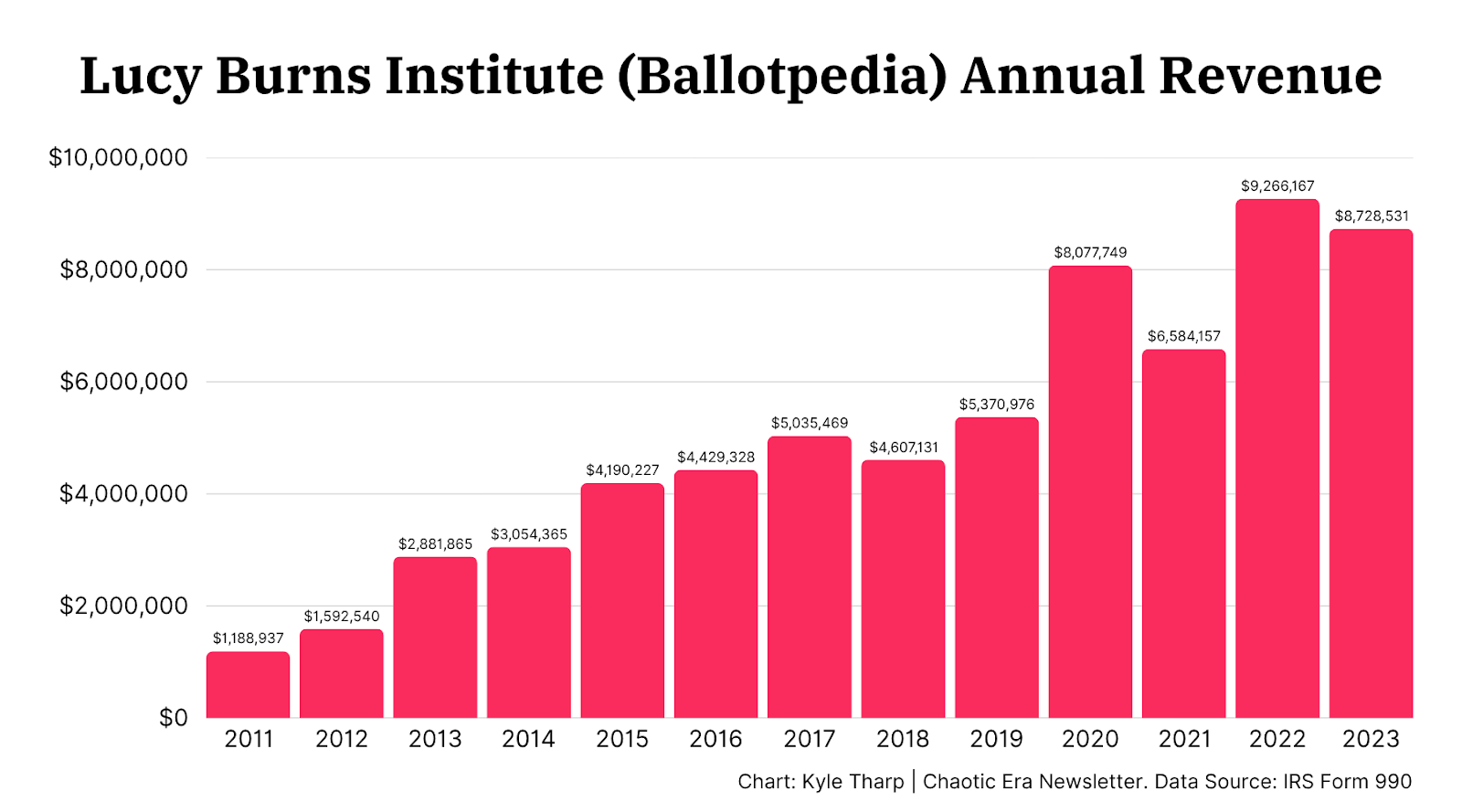 “These are all central funders of the right-wing that grant carefully and strategically,” says David Armiak, Research Director of the Center for Media & Democracy, which has tracked the Lucy Burns Institute for years. “If Ballotpedia offered no assistance to the movement, they would not be sending them tens of millions of dollars.”